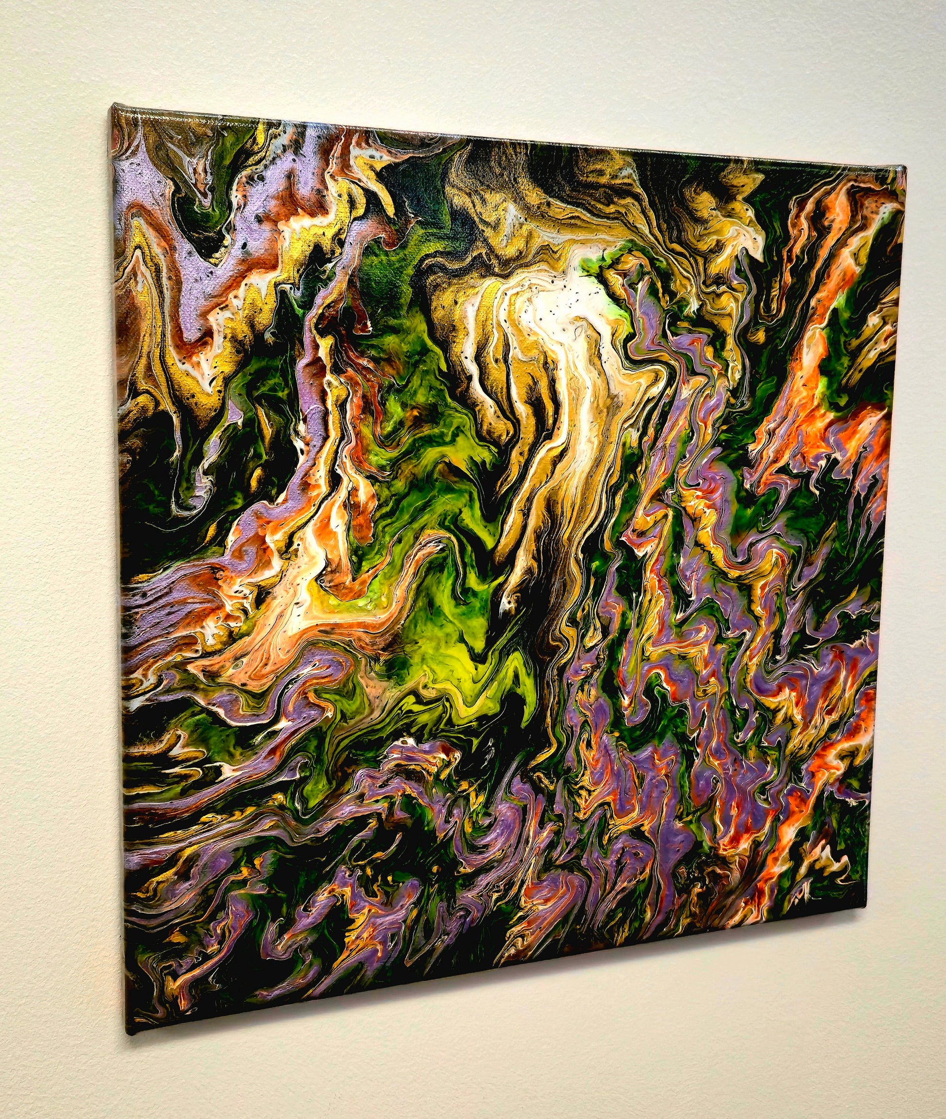 Żywa Materia – Obraz Abstrakcyjny Pouring Art 40x40 cm